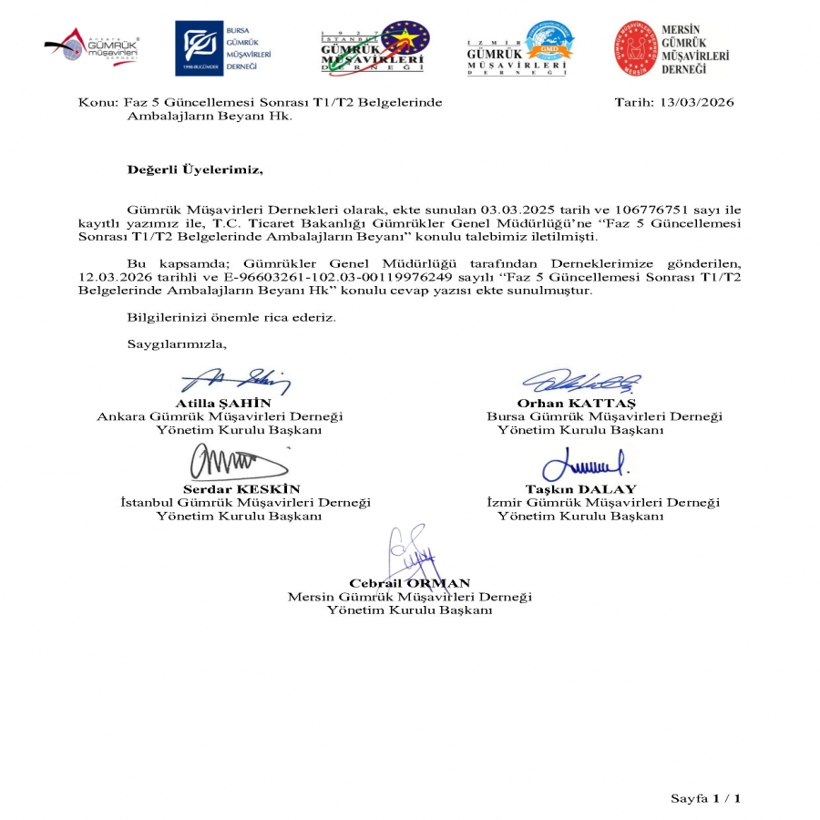 GündemFaz 5 Güncellemesi Sonrası T1/T2 Belgelerinde Ambalajların Beyanı Hk